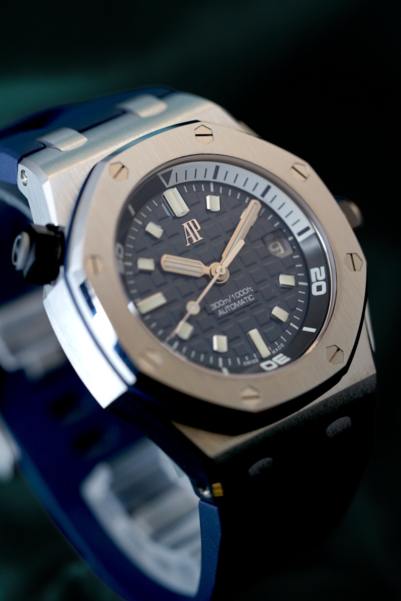Presenting a pristine, unpolished AP Royal Oak Offshore Diver with a full 2025 warranty. This latest model features the stunning blue gradient dial and comes with additional straps for ultimate versatility. (It comes in a set with Pebble White, Deep Ocean Blue, and a Black strap)