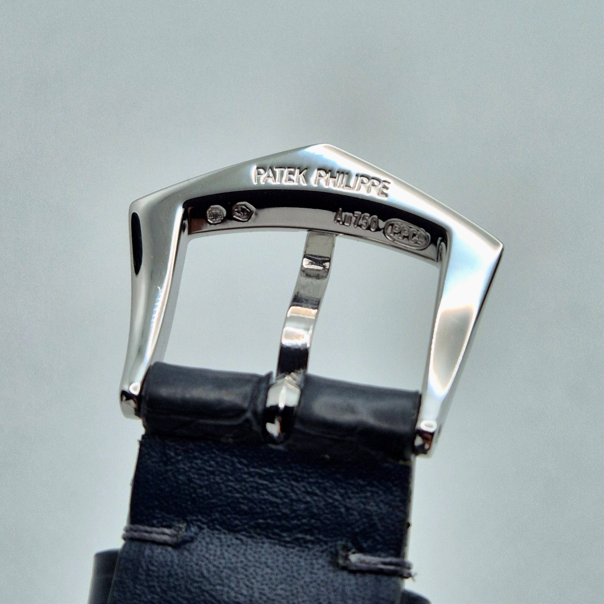 The 36mm white gold case, paired with a 1.092 CT. diamond-set bezel, strikes a harmonious balance between sophistication and wearability. Powered by the Caliber 240 HU, this timepiece incorporates Patek’s signature micro-rotor for slimness and precision. The blue alligator leather strap, complemented by a prong buckle set with 27 diamonds, completes its refined aesthetic. Includes a full set with boxes, papers, and accessories, making it a compelling choice for collectors seeking both technical excellence and timeless elegance.
